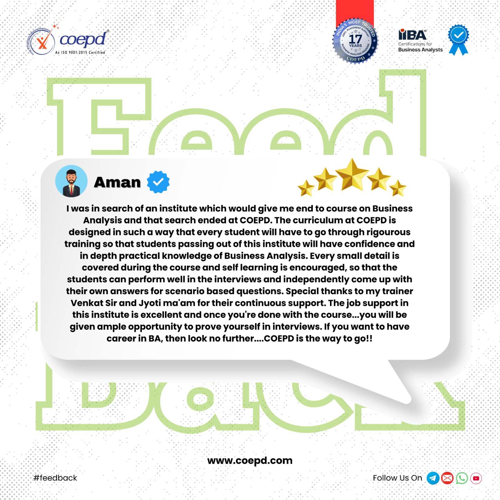 student testimonials, Google reviews, and personal feedback, reflecting our pledge to
